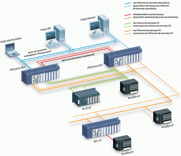 PACSystems RX3i jest podstawowym elementem składowym systemów sterowania wysokiej dostępności. System taki, oprócz podwojonych jednostek centralnych gwarantujących bez uderzeniowe przełączanie na kontroler zapasowy w razie wystąpienia awarii, pozwala na redundancję systemu na poziomie zasilaczy, modułów i magistral komunikacyjnych oraz modułów do synchronizacji danych. Konfiguracja systemu redundantnego realizowana jest w analogiczny sposób jak systemów z jedną jednostką centralną